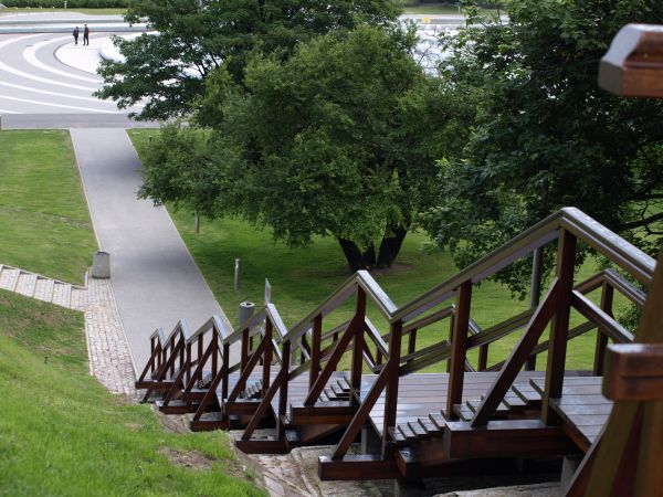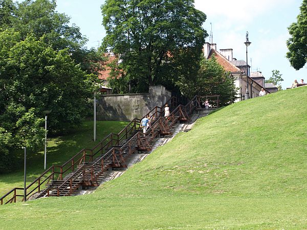 prowadzą ku Wiśle drewniane schody, a dalej w