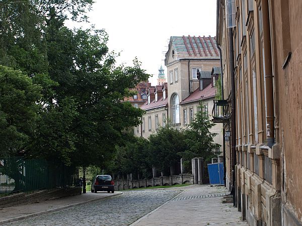 biegnie pod górę skarpy - od Mostowej do Rynku
